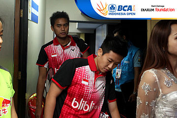 Tontowi Ahmad/Liliyana Natsir (Indonesia) bersiap memasuki lapangan pertandingan