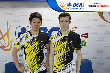 Lee Yong Dae/Yoo Yeon Seong (Korea) berfoto bersama saat konfrensi pers