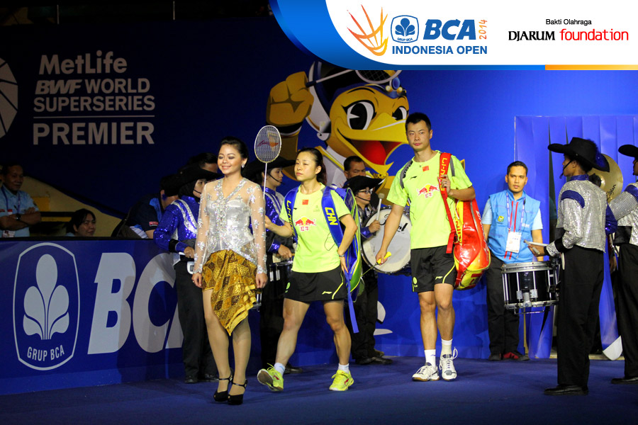 Xu Chen/Ma Jin (China) saat memasuki lapangan pertandingan