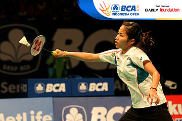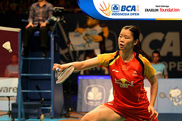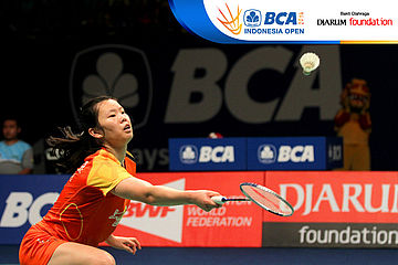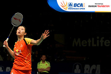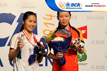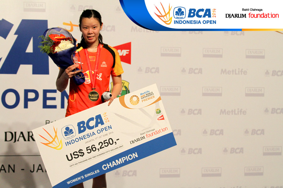 Li Xuerui (China) saat di podium juara BCA Indonesia Open Super Series Premiere 2014