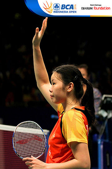 Li Xuerui (China) memberikan apresiasi kepada seluruh pengunjung Istora Senayan