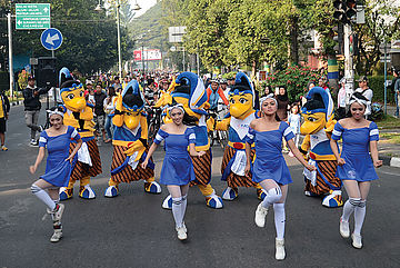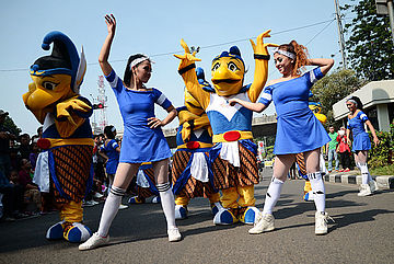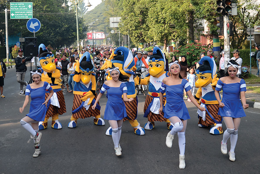 Maskot BIO & Sexy Dancer di Car Free Day Bandung. Sumber : Pikiran Rakyat