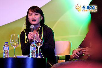 Gita Wirjawan, Ketua Umum Pengurus Pusat PBSI menjawab pertanyaan dari media.