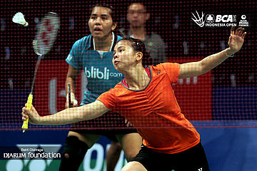 Greysia Polii/Niyta Krishinda (Indonesia) saat berlatih.