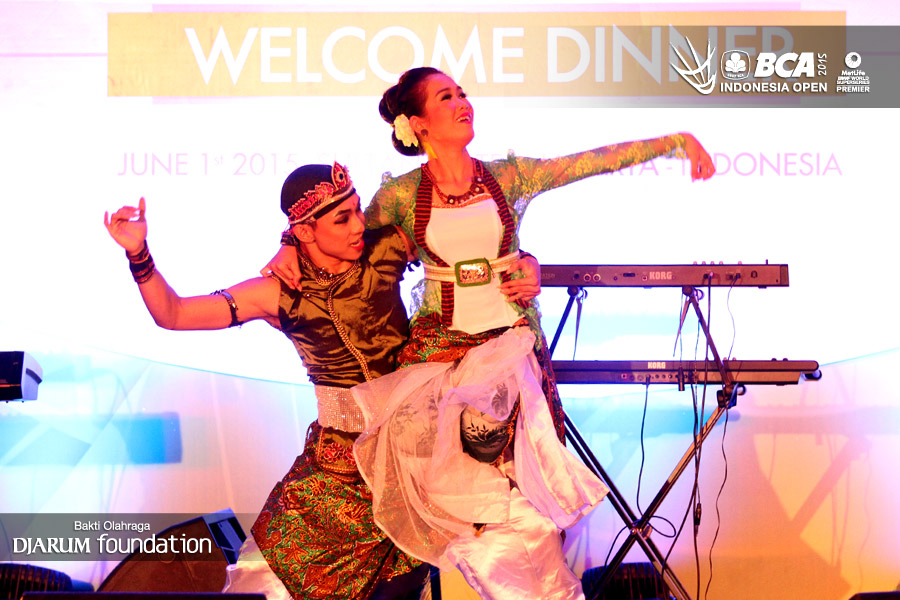 Salah satu penari saat tampil menghibur para tamu undangan di Welcome Dinner BCA Indonesia Open Super Series Premier 2015.