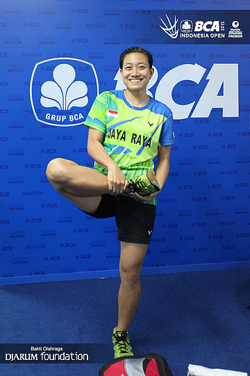 Melati Daeva O melakukan persiapan sebelum bertanding.