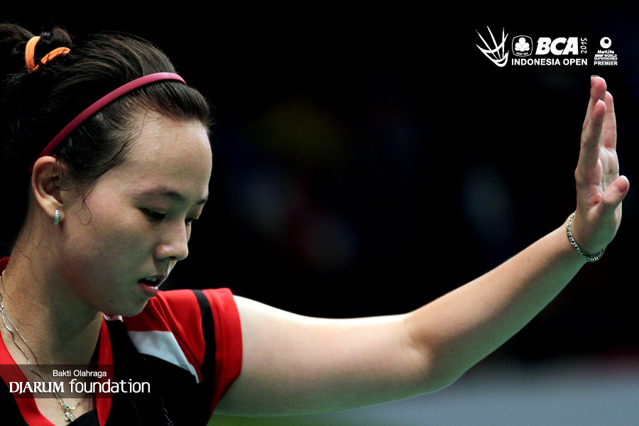 Ekspresi Meiliana Jauhari (Indonesia) saat kehilangan poin.
