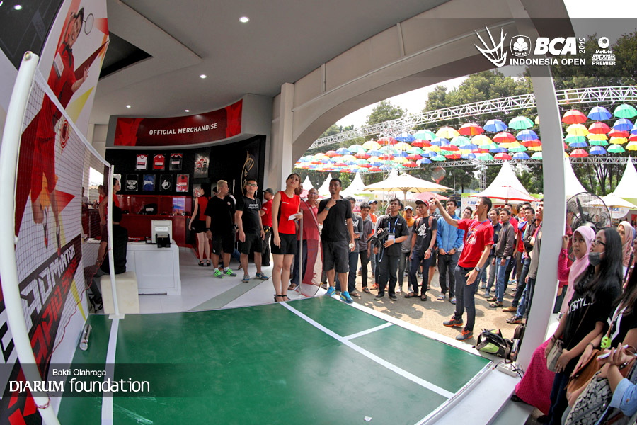 Para pengunjung memenuhi arena games di booth Djarum Foundation.