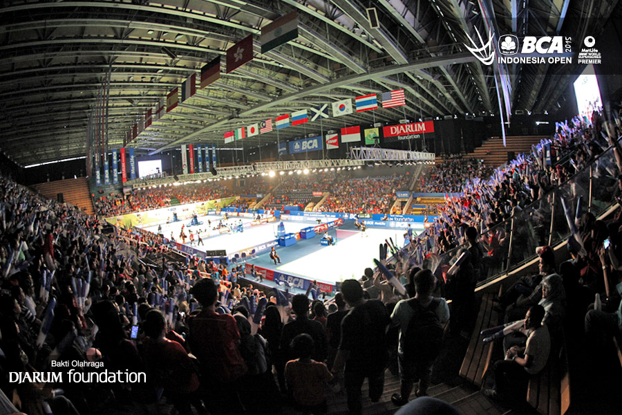 Ribuan penonton memenuhi Istora Senayan pada gelaran perdana BCA Indonesia Open mulai ramai didatangi pengunjung.