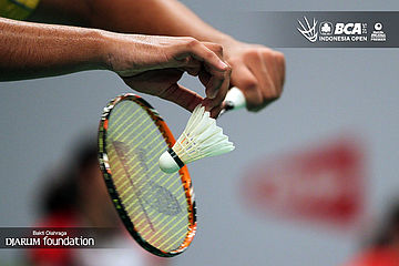 Selebrasi Tontowi Ahmad (Indonesia) setelah berhasil mengalahkan pasangan ganda campuran Korea Selatan, Lee Chun Hei/Chau Hoi Wah.
