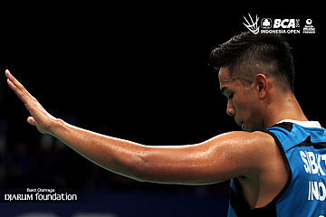 Edi Subaktiar (Indonesia) bersiap menyambut serve.
