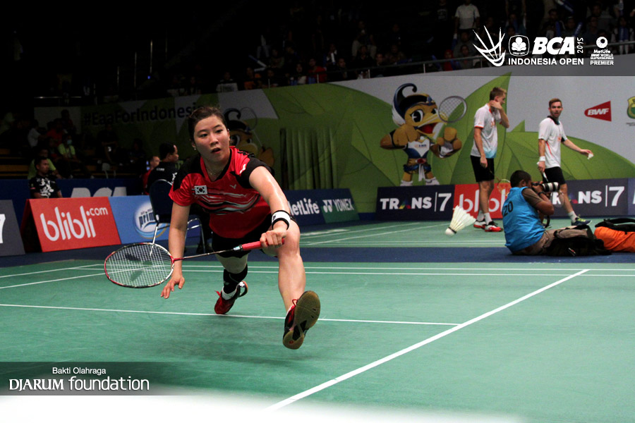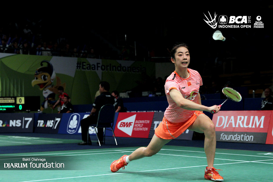 Wang Shixian (China) menyambut pengembalian dari Bae Teon Ju (Korea).