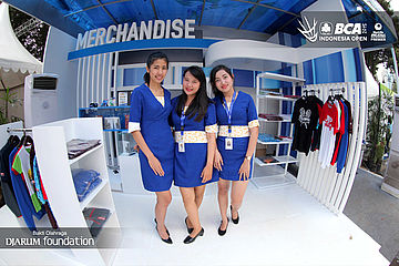 Para usher berpose di booth BCA.
