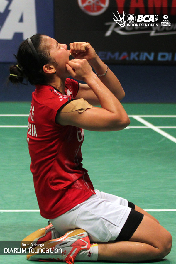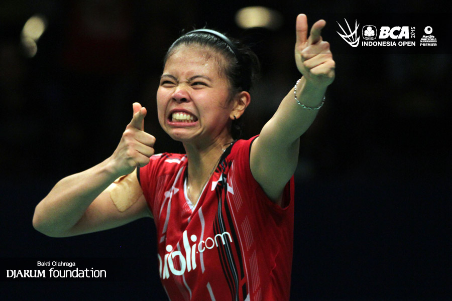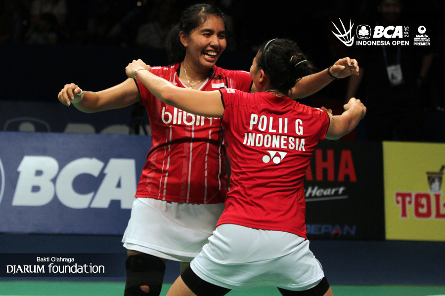 Selebrasi kemenangan Greysia Polii/Nitya Krishinda (Indonesia).