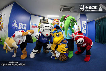 Para mascot berpose di player gate.