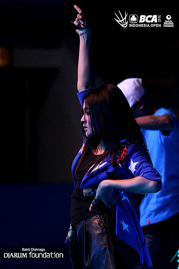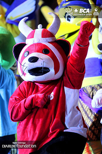 Aksi salah satu maskot turut memeriahkan gelaran BCA Indonesia Open Super Series Premier 2015.