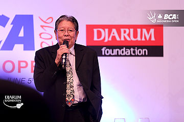 Ketua Panitia Pelaksana BCA Indonesia Open Super Series Premier 2016 Anton Subowo memberikan sambutan