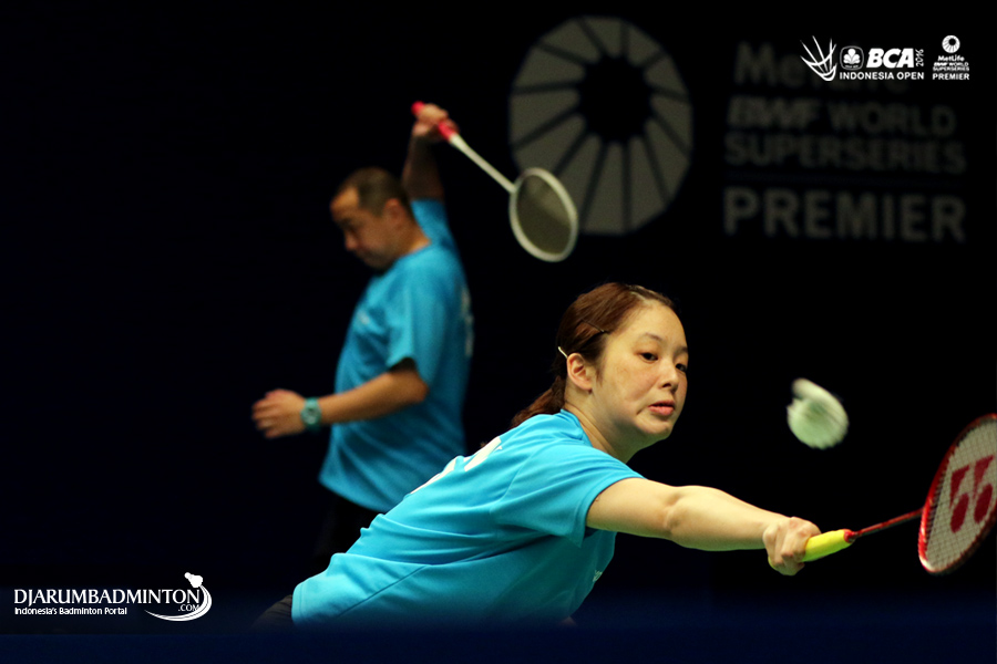 Misaki Matsutomo (Jepang) menyambut shuttlecock