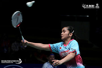 Hera Desiana (Indonesia) mengembalikan shuttlecock