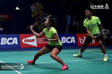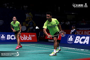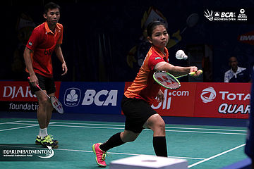 Ardiansyah Putra/Devi Tika (Indonesia) bersiap menghadang serangan