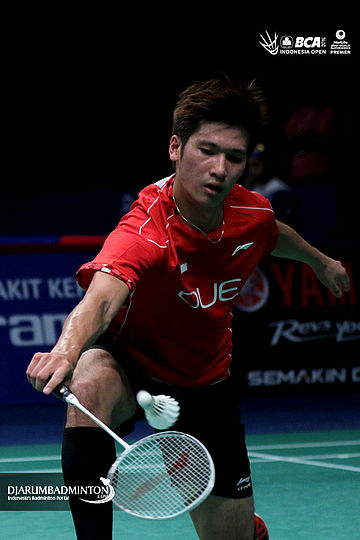 Zi Liang Derek Wong (Singapura) mengembalikan shuttlecock