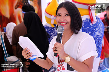 MC saat acara meet and greet di booth Djarum Foundation