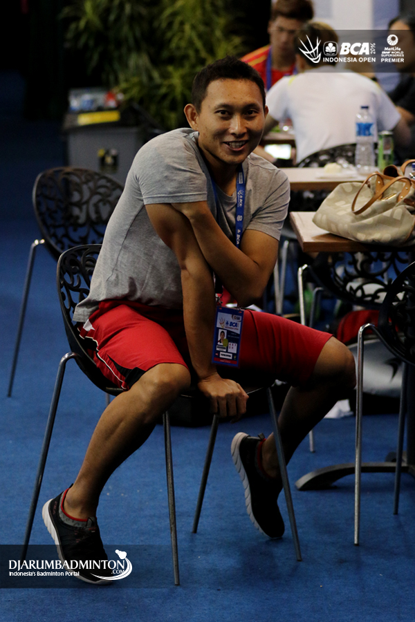 Sony Dwi Kuncoro (Indonesia) terlihat bersantai di player lounge