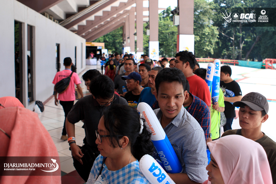 Antrian para supporter indonesia menuju arena pertandingan BCA Indonesia Open Super Series Premier 2016