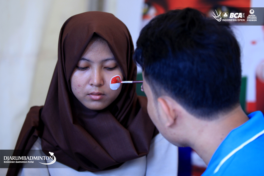 Salah seorang supporter sedang melakukan face painting