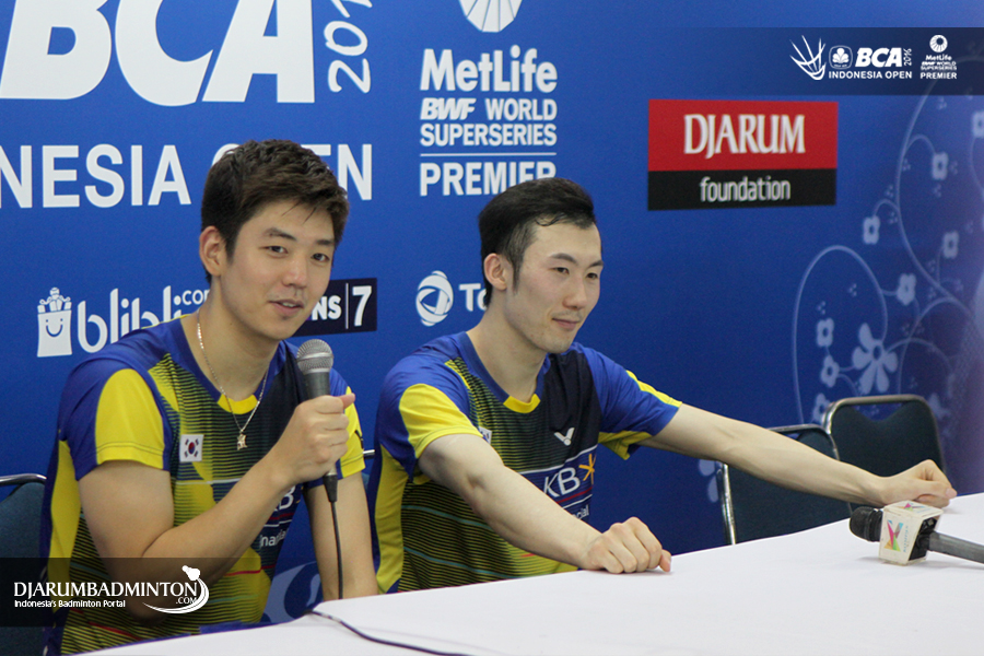 Lee Yong Dae dan Yoo Yeon Seong saat menjawab pertanyaan awak media