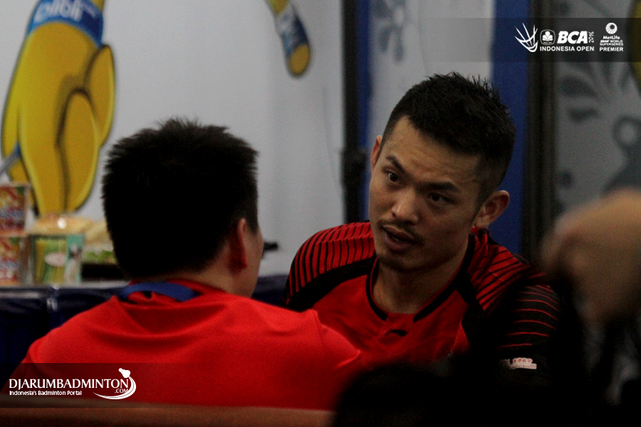 Lin Dan (Tiongkok) bersantai di player lounge setelah bertanding