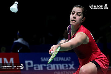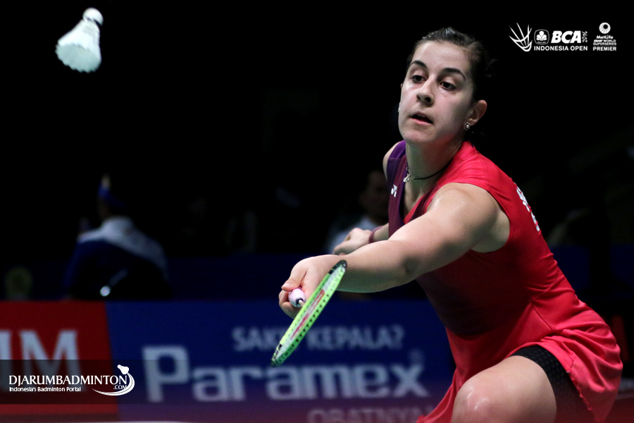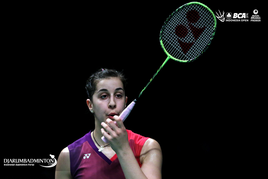 Carolina Marin (Spanyol) meniup raketnya