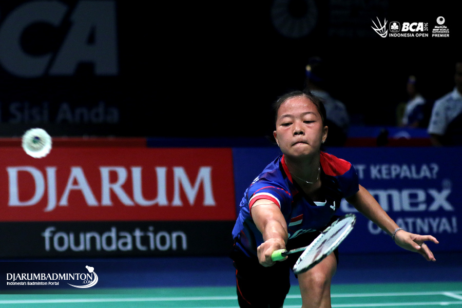 Fitriani (Indonesia) menghadang serangan