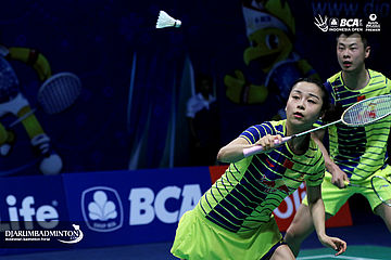Xu chen/Ma Jin (Tiongkok) menghadang serangan