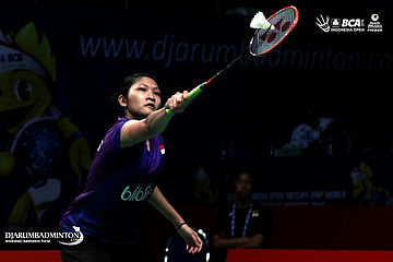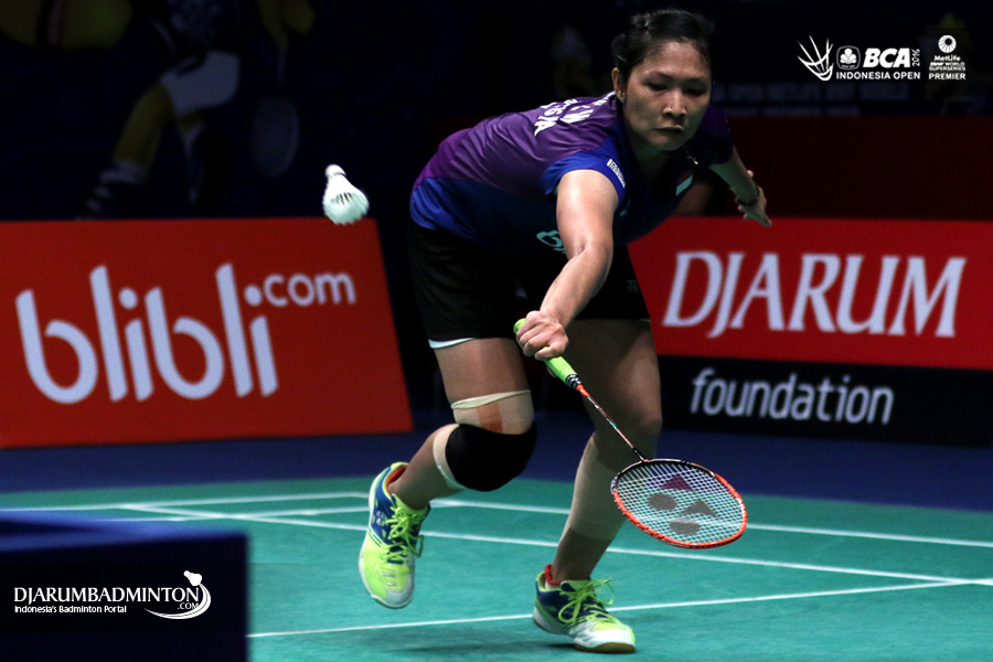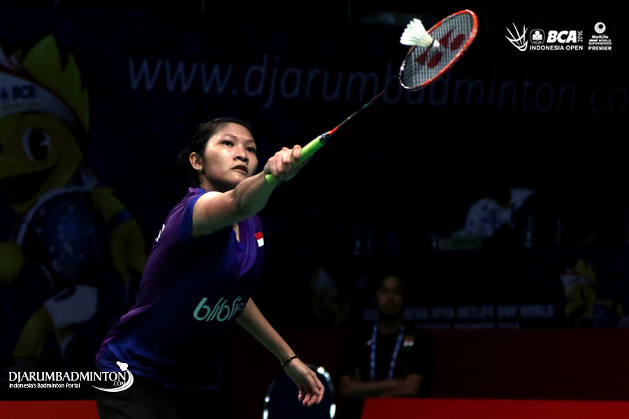 Lindaweni Fanetri (Indonesia) mengembalikan shuttlecock