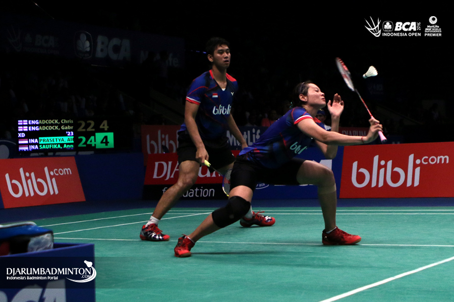Alfian Eko/Annisa Saufika (Indonesia) menghadang serangan