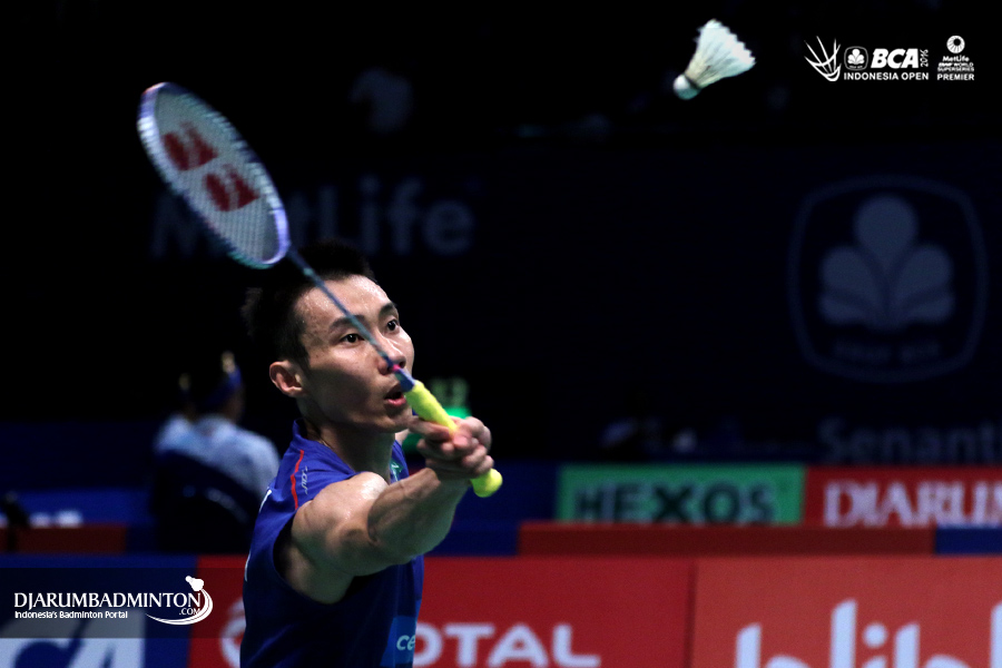Lee Chong Wei (Malaysia) mengembalikan shuttlecock