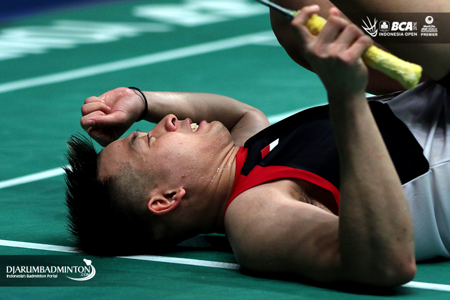 Ihsan Maulana Mustofa (Indonesia) memberikan apresiasi kepada seluruh supporter yang memenuhi Istora, Senayan Jakarta