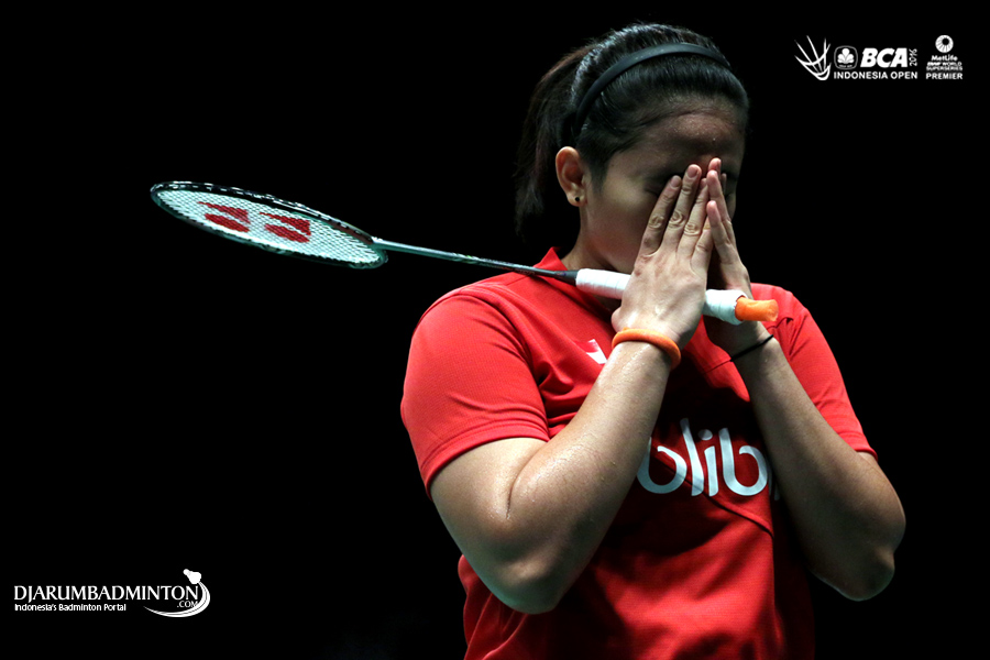 Ekspresi Richi Puspita Dili (Indonesia) saat berhasil mencetak poin