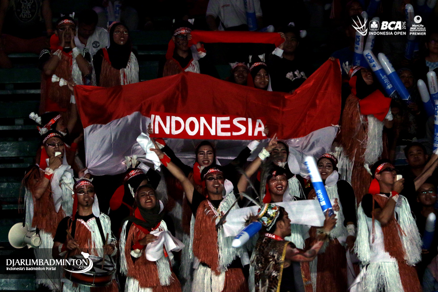 Supporter fanatik bulutangkis memberikan dukungan kepada para atlet Indonesia