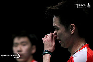Ekspresi Kevin Sanjaya (Indonesia)