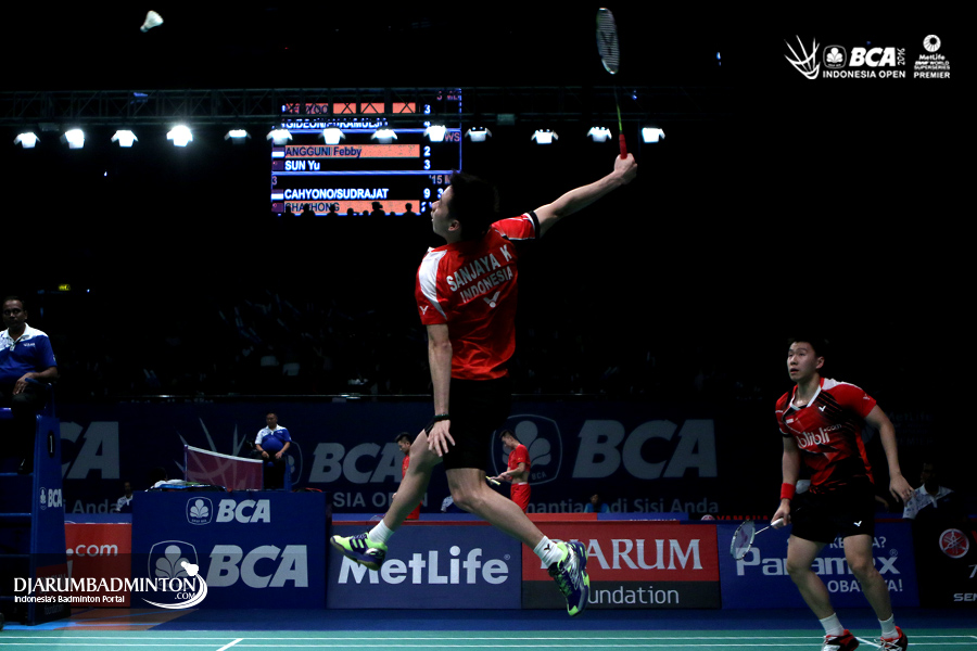 Alfian Eko Prasetya/Annisa Saufika (Indonesia) menyambar pengembalian tanggung