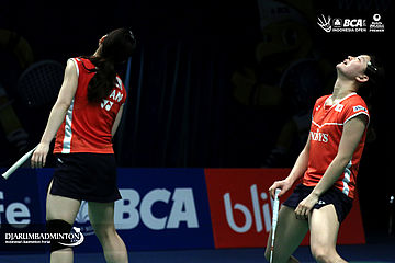 Ekspresi kekecewaan Ayaka Takahashi/Misaki Matsutomo (Jepang)