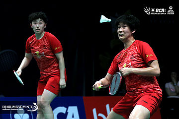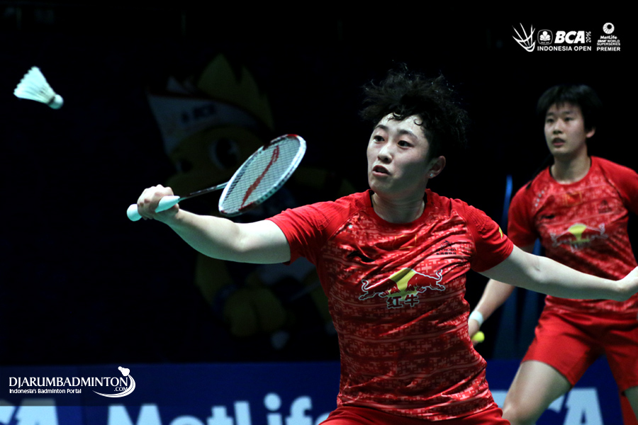 Yu Yang/Tang Yuanting (Tiongkok) menghadang serangan