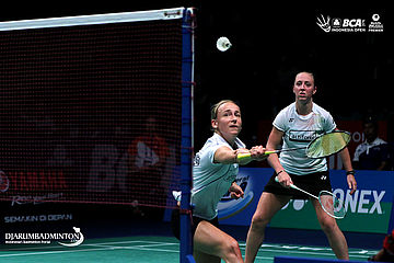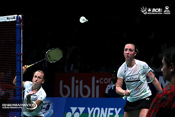 Kekompakan Eefje Muskens/Selena Piek (Belanda) di lapangan