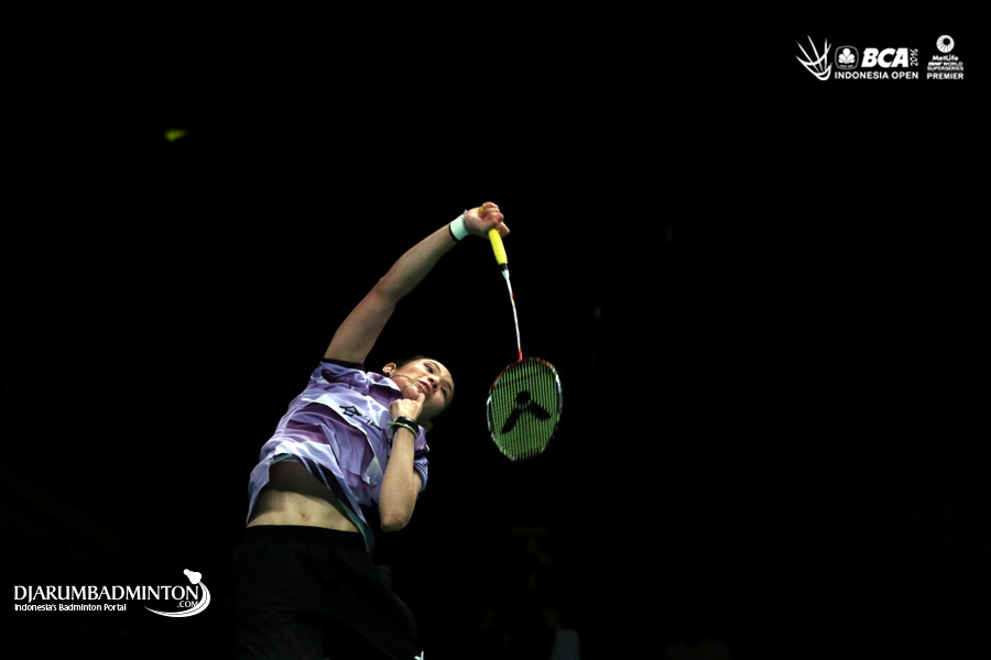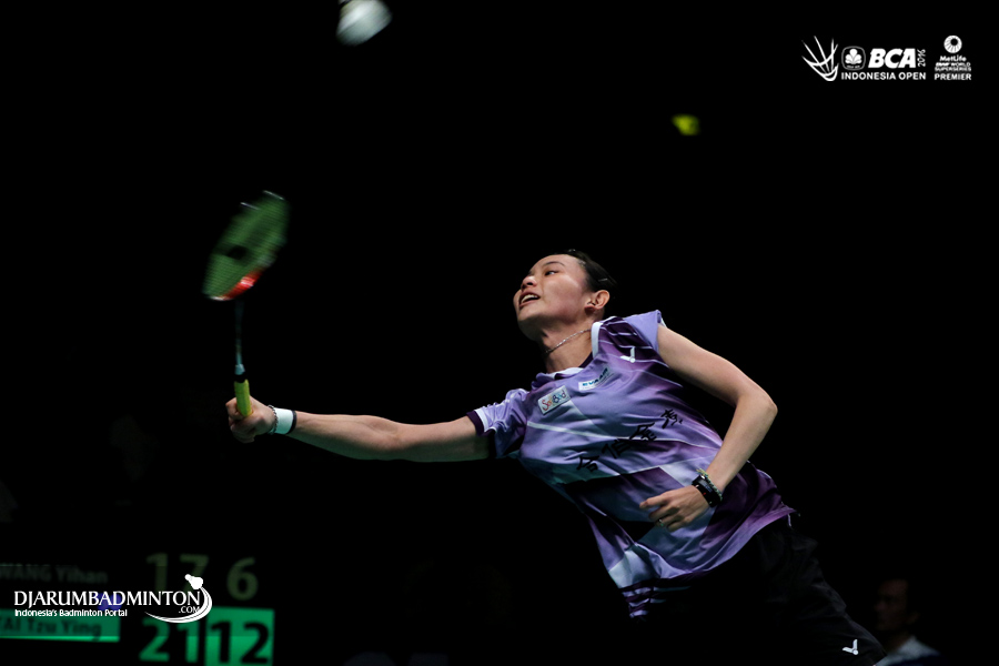 Tai Tzu Ying (Taipei) mengembalikan shuttlecock