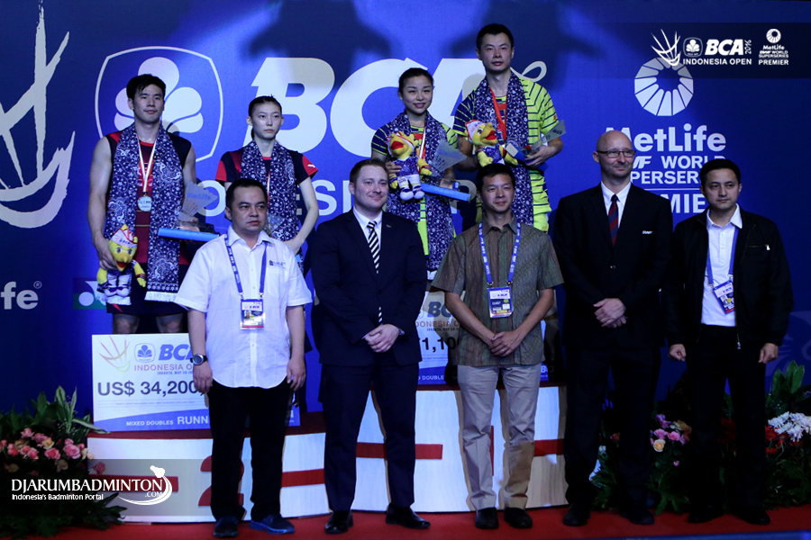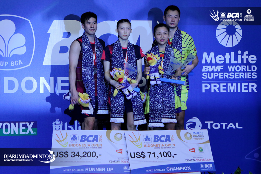 Ko Sung Hyun/Kim Ha Na (Korea) dan Xu Chen/Ma Jin (Tiongkok) di podium