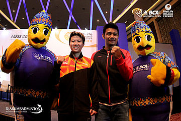 Liliyana Natsir dan Berry Anggriawan photo bersama maskot BIO 2017