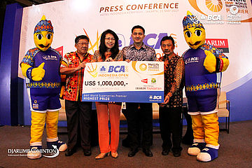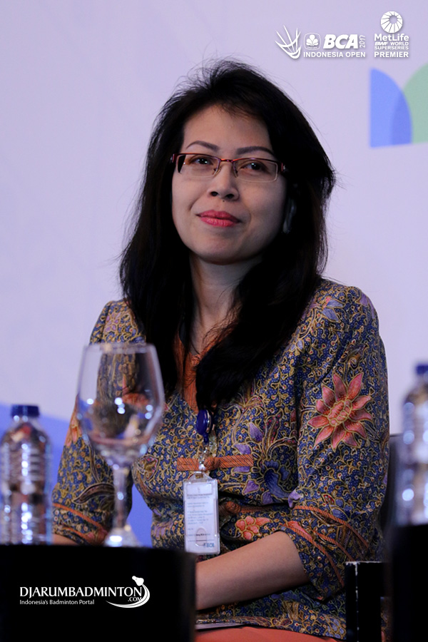 Inge Setiawati selaku Executive VP CSR Bank BCA saat press conference BCA Indonesia Open Superseries Premier 2017