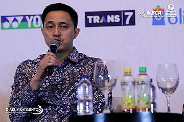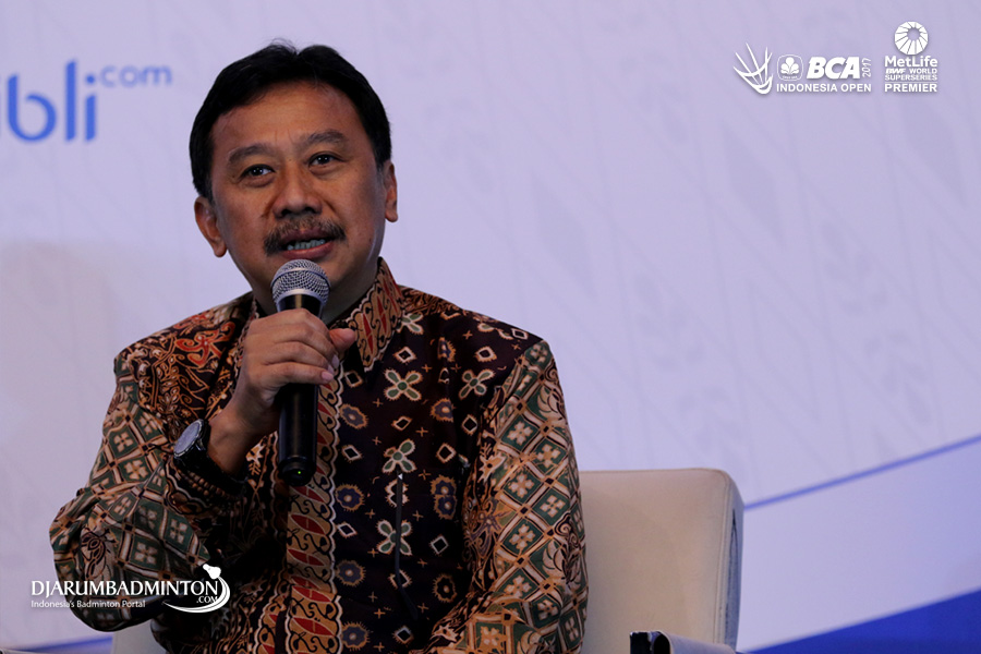 Yopppy rosimin selaku Panitia Pelaksana BIOSSP 2017 saat press conference BCA Indonesia Open Superseries Premier 2017